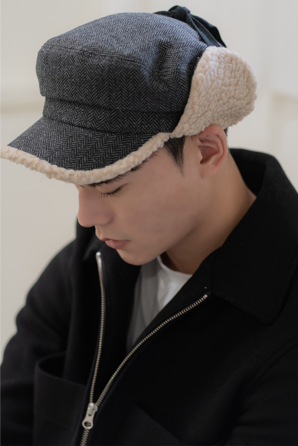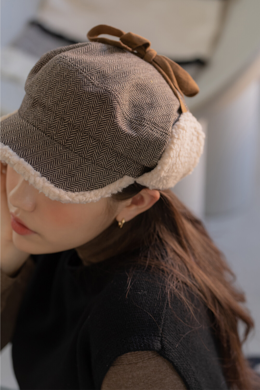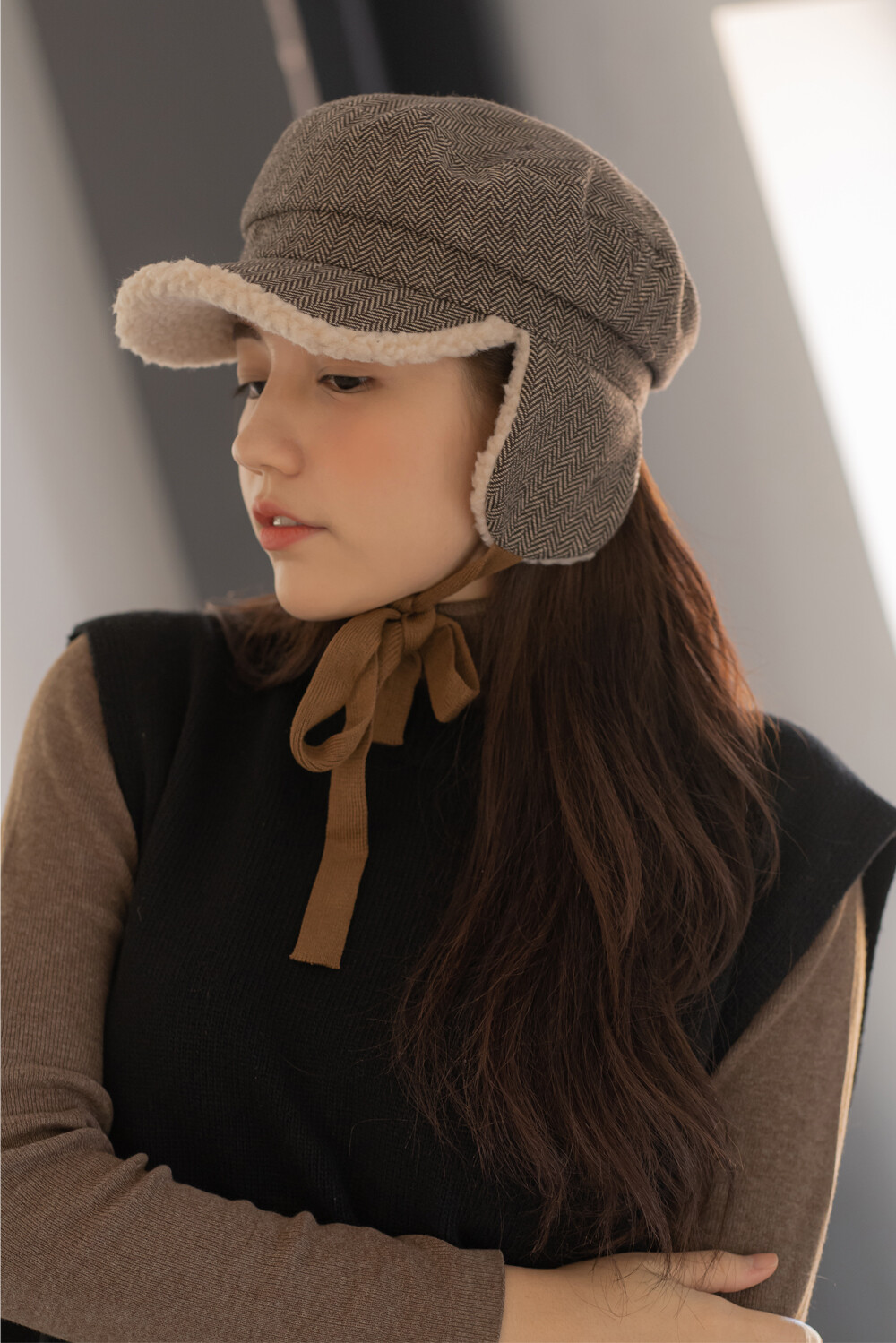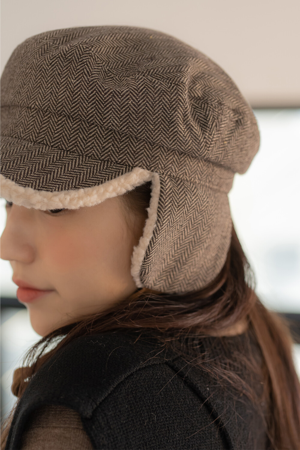 체크 귀달이캡