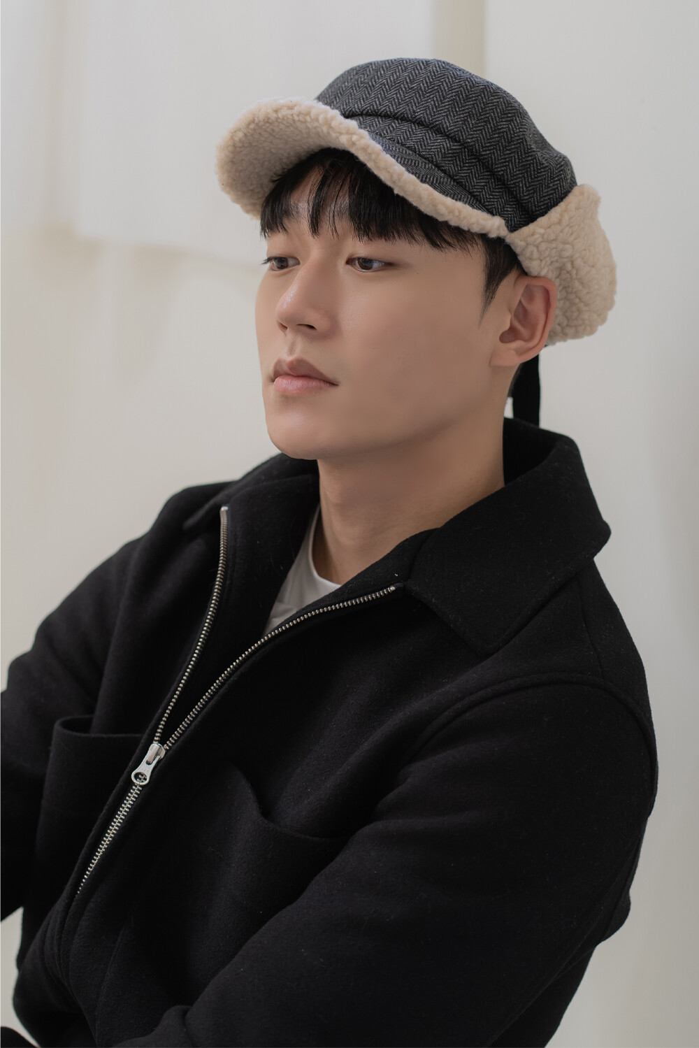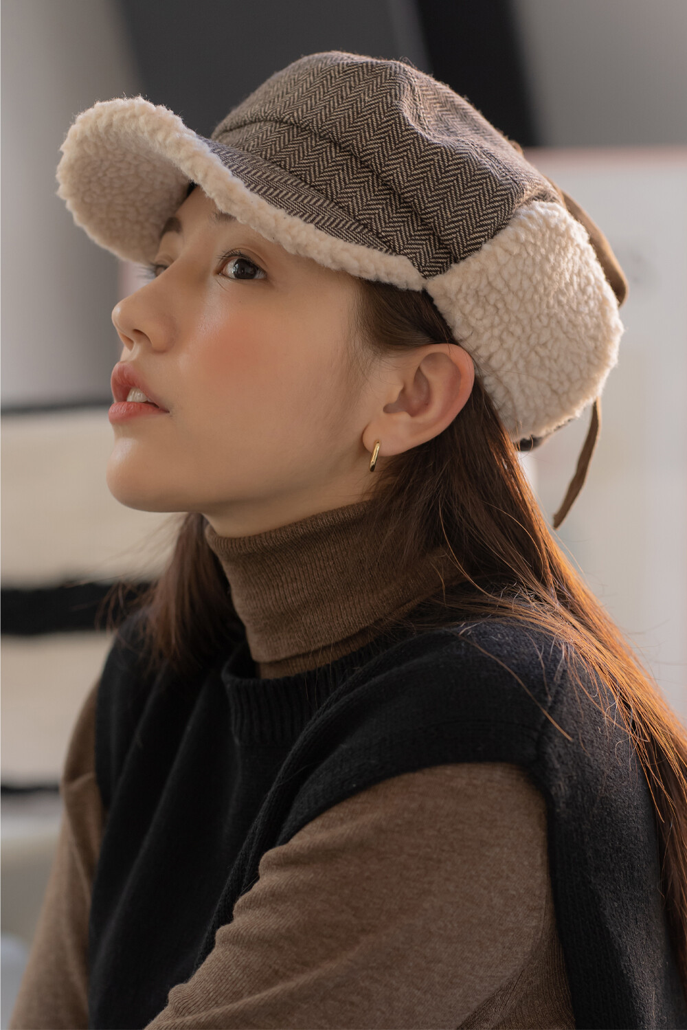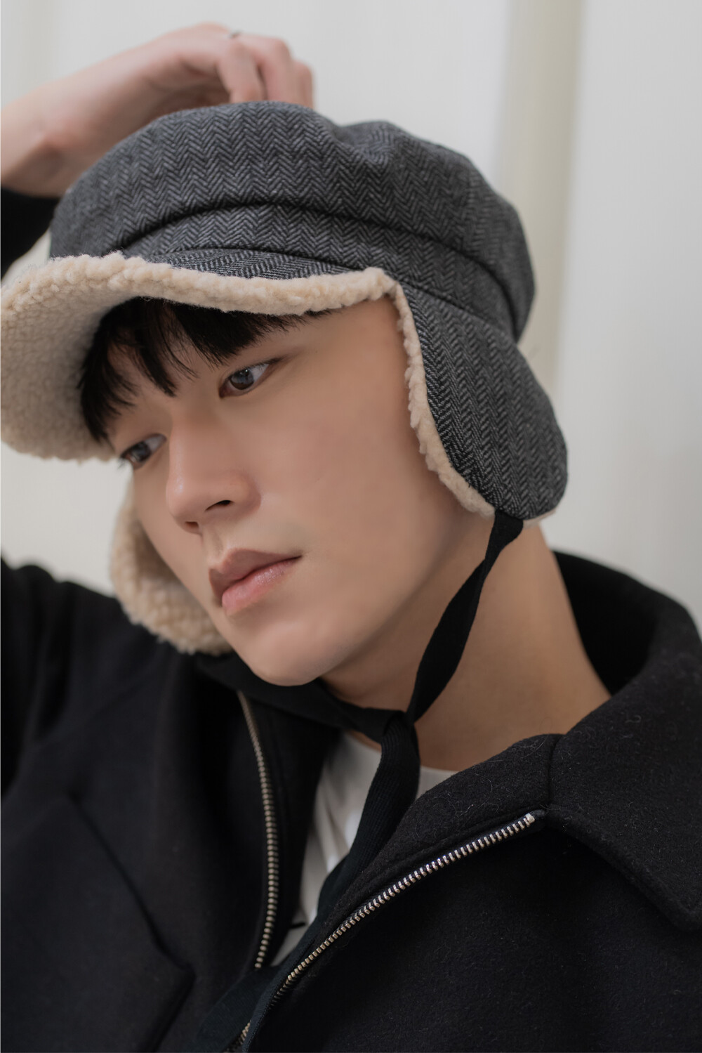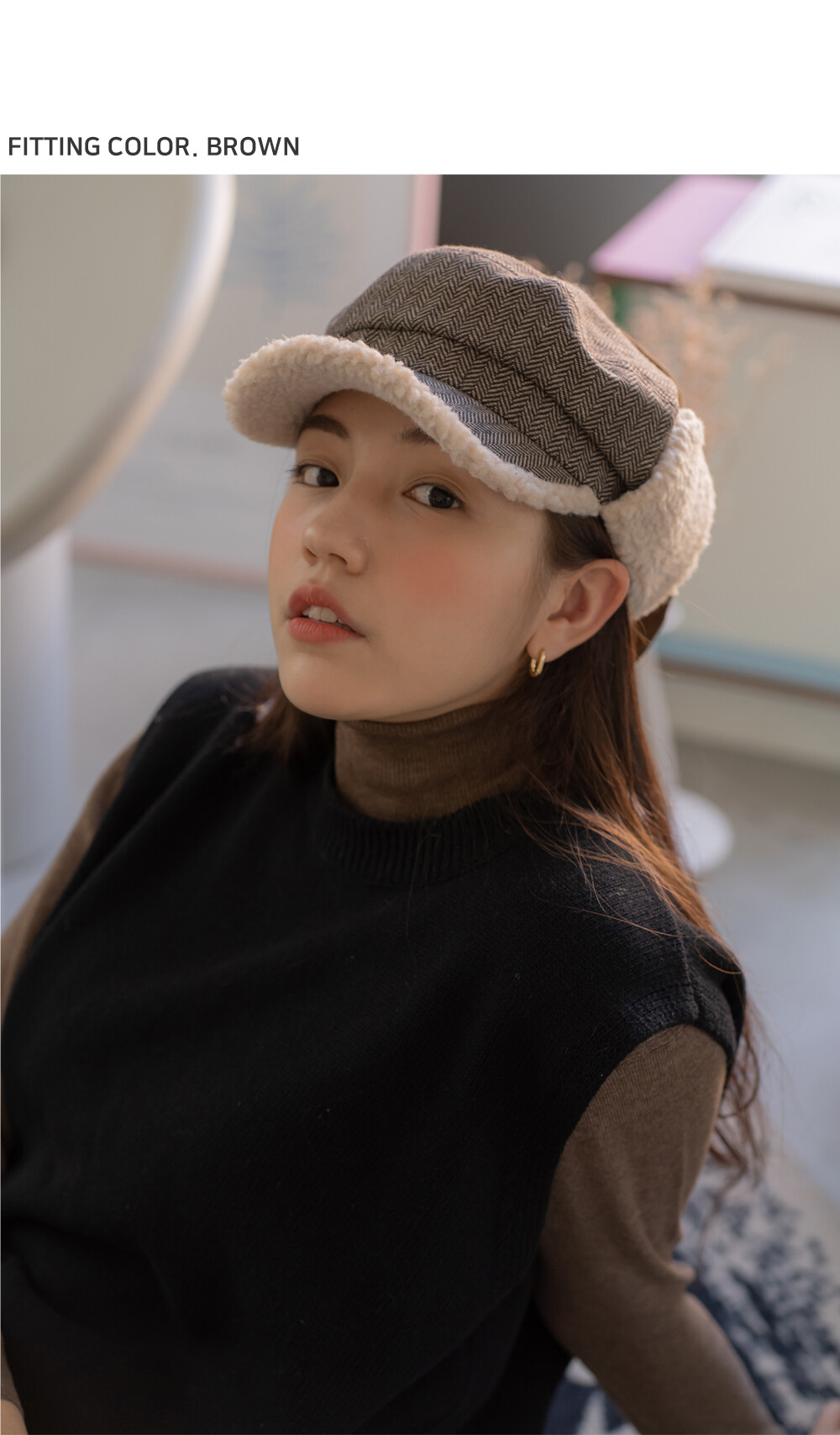 체크 귀달이캡